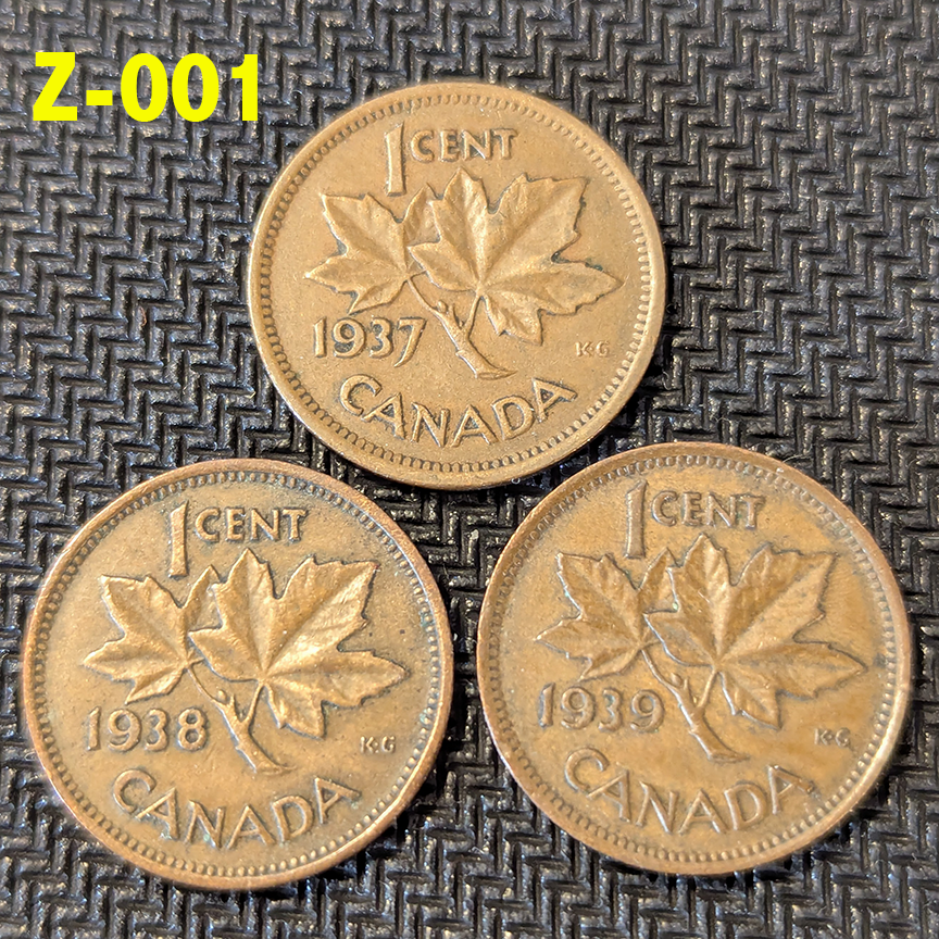 1937, 1938, 1939 Canada 1-Cent George VI CIRCULATED